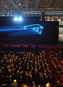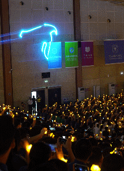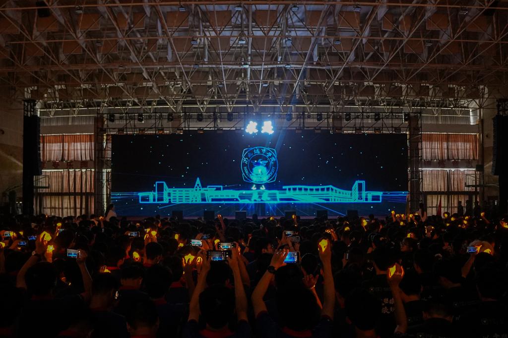 在“城市理想,逐梦启航”启动仪式中,无数光线奔涌向前,如星河倾泻,汇聚成梦想的洪流——这是三千多名新生跨越山海、奔赴未来的炽热轨迹!