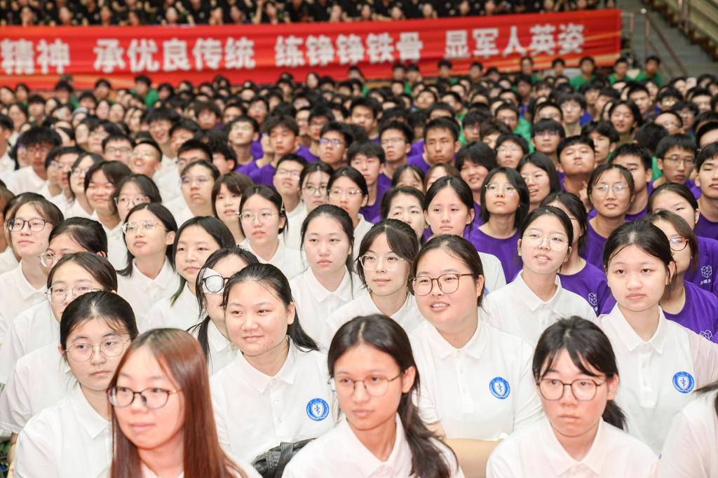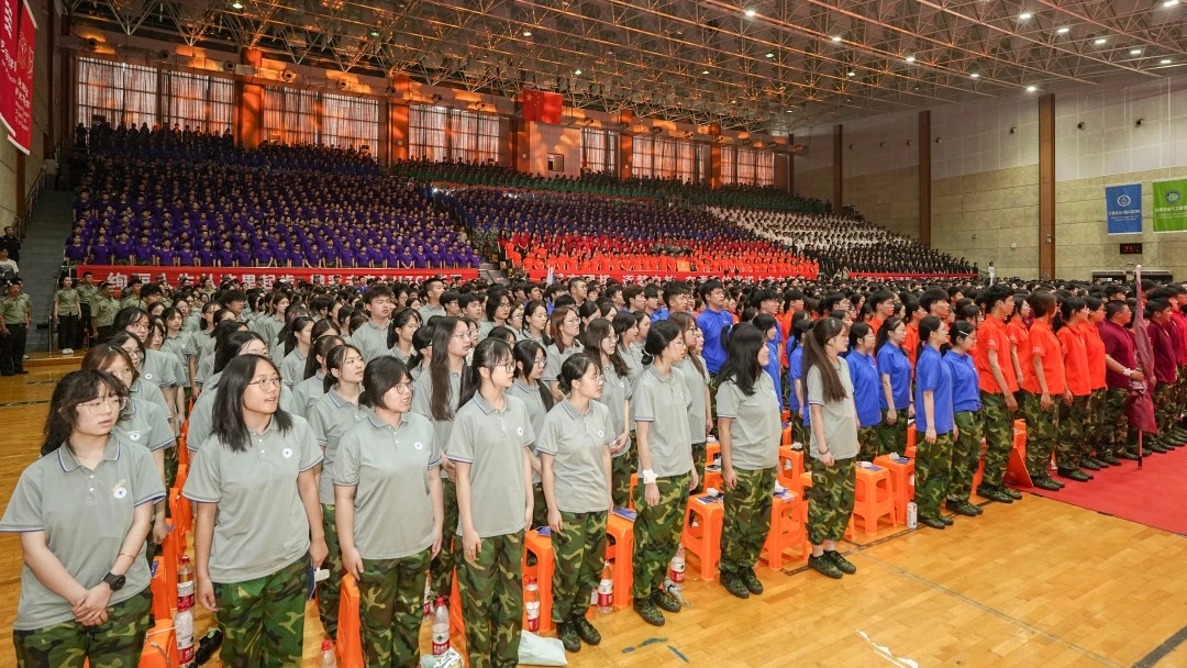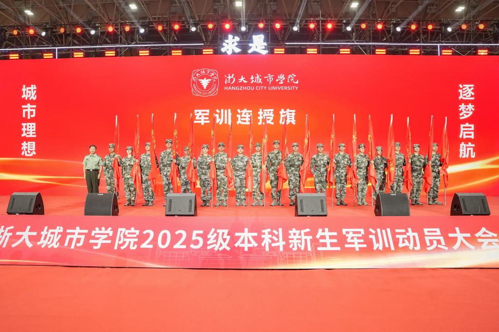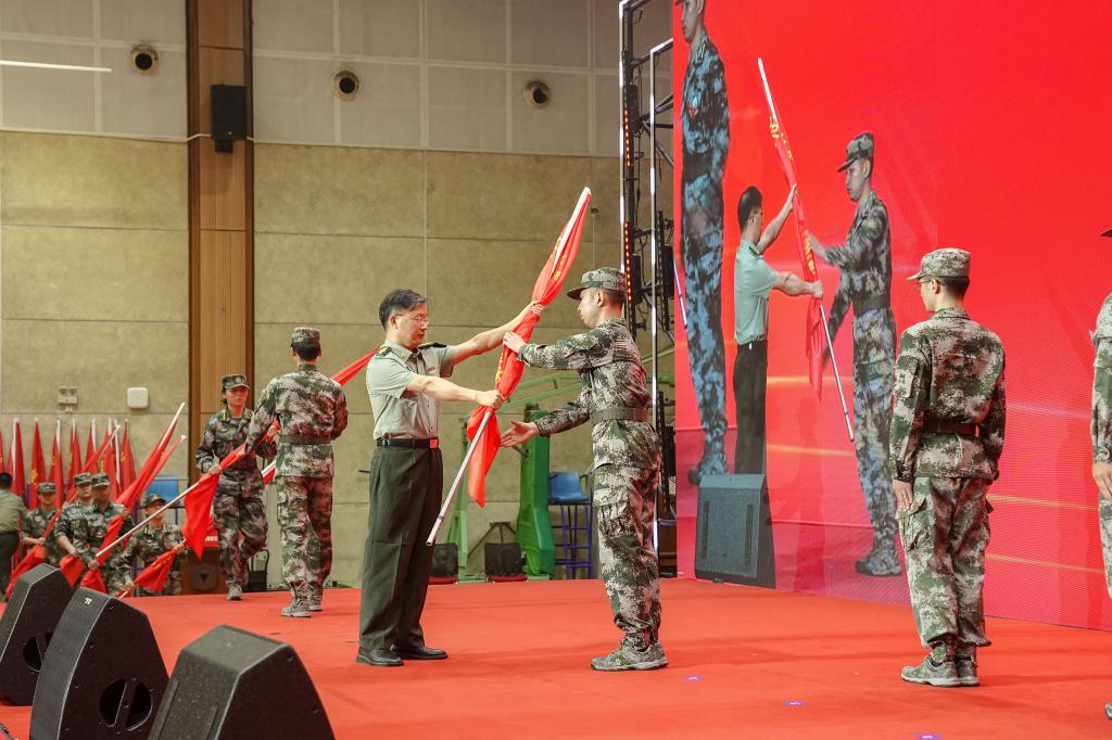在2025级新生军训动员大会环节,副校长、军训旅旅长斯荣喜为各连队授旗。骄阳映迷彩,汗水润初心。相信这段军训时光,将让新生们实现自我蜕变,收获成长力量,以更昂扬的姿态开启校园新生活。
