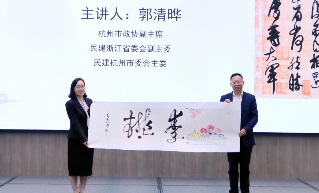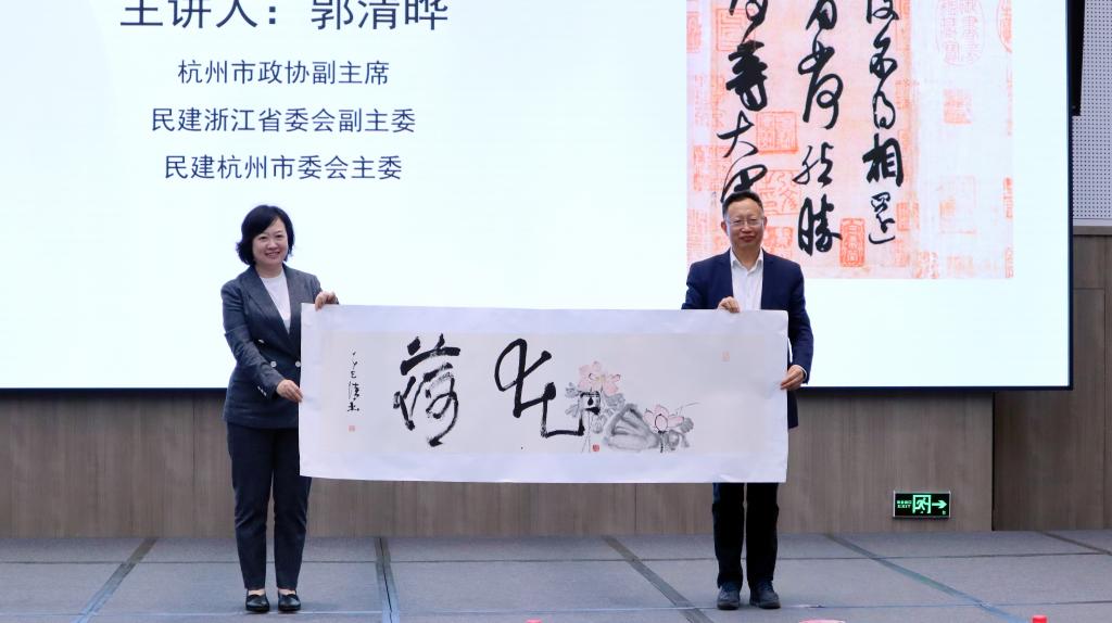 2025年4月21日晚,杭州市政协副主席、民建浙江省委会副主委、民建杭州市委会主委郭清晔受邀做客城院大讲堂,为师生带来题为《大草两千年》的精彩讲座。校党委副书记叶桂方出席并向郭清晔赠送城院大讲堂纪念牌。