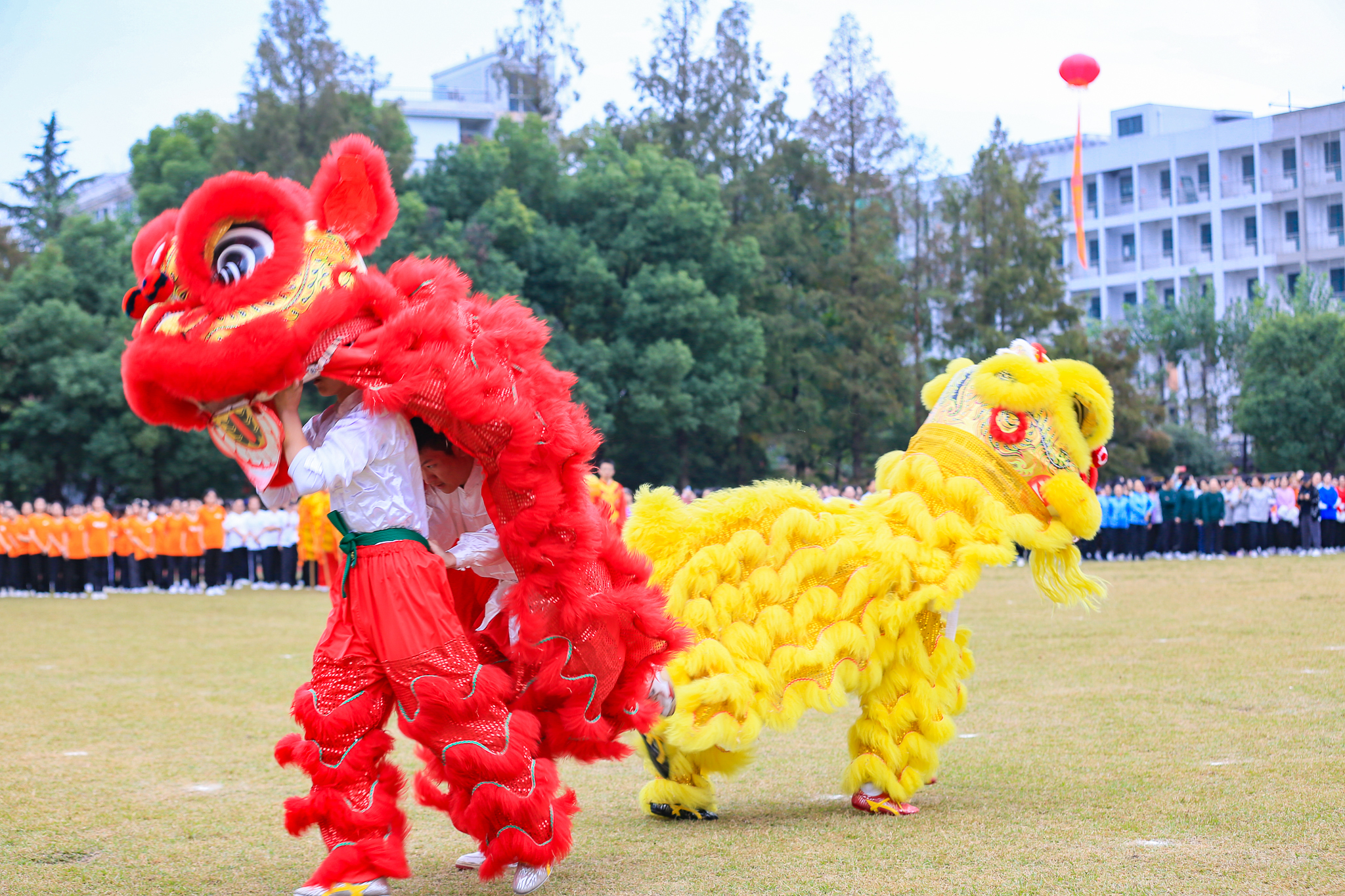 武术社团的舞龙舞狮表演令在场的所有人眼前一亮。伴随着传统民乐的节奏,成员默契配合、紧密衔接,以扭、挥、仰、跪、跳、摇等姿势,完成了八字舞龙、奔跑游龙、穿腾跳跃等技术动作,栩栩如生地诠释出龙狮的磅礴气势。而这场精彩绝伦的龙狮共舞以“中国龙”三个字造型结束,展现了充满凝聚力和创造力的民族传统文化,将现场的氛围推到了最高潮。