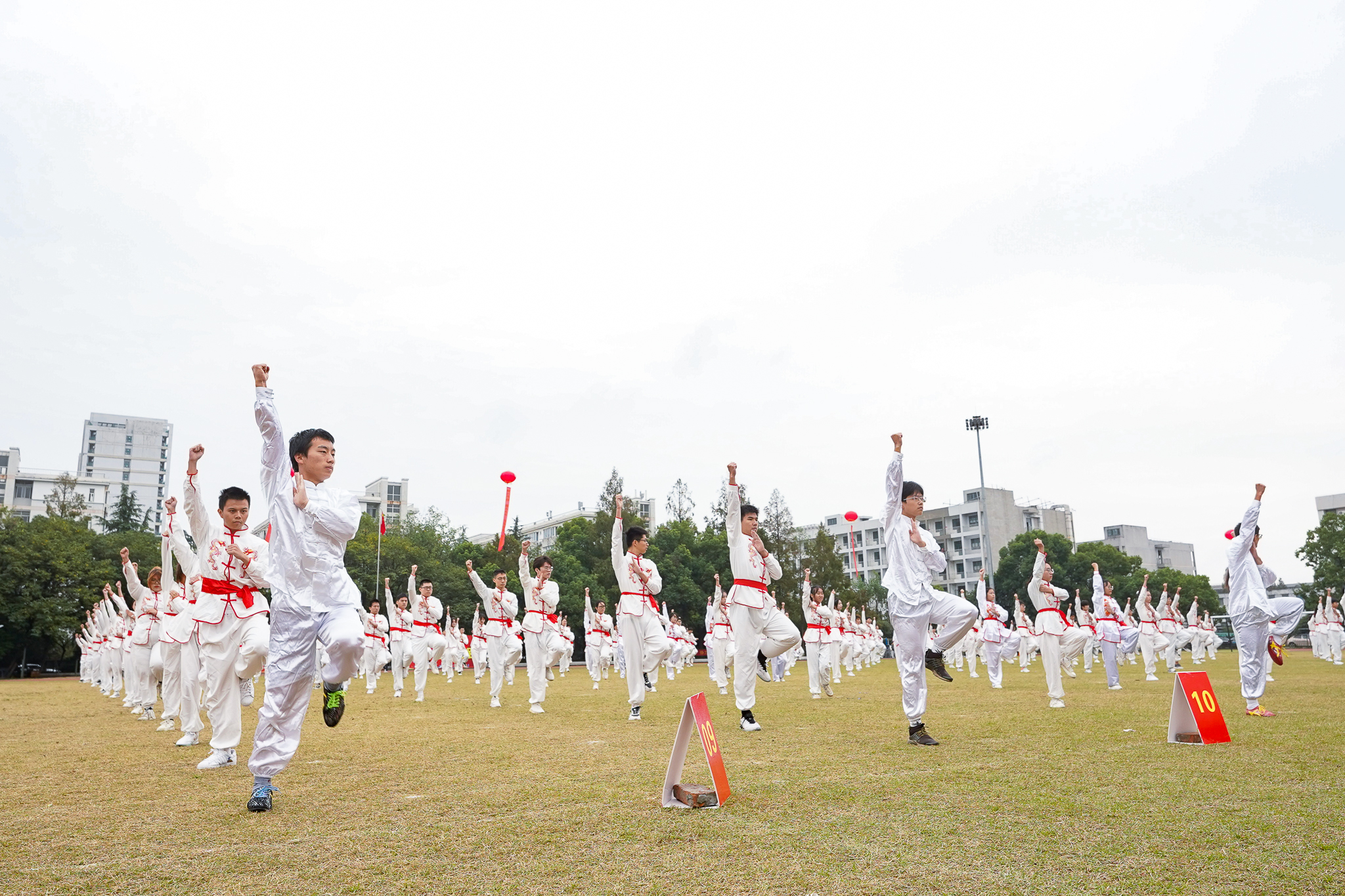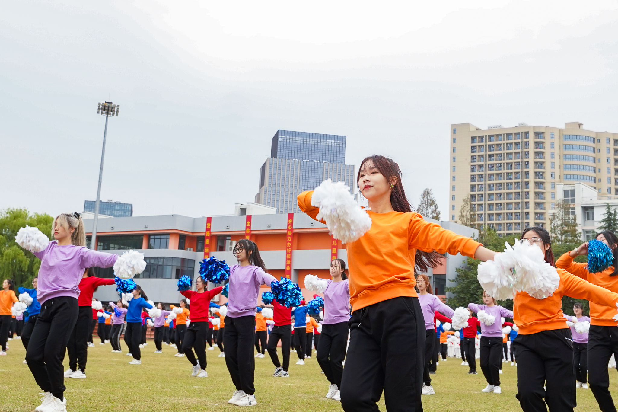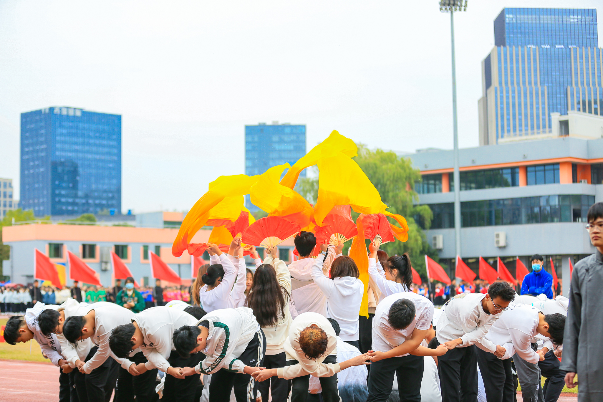 铿锵有力的音乐响起,穿着各色院服的城院学子编织出了蓝天之下最靓丽的风景线。健美操和广播操队列规整、动作整齐,这恰到好处的力度与极强的节奏律动互相融合,刻画出少年风华正茂的最美姿态。