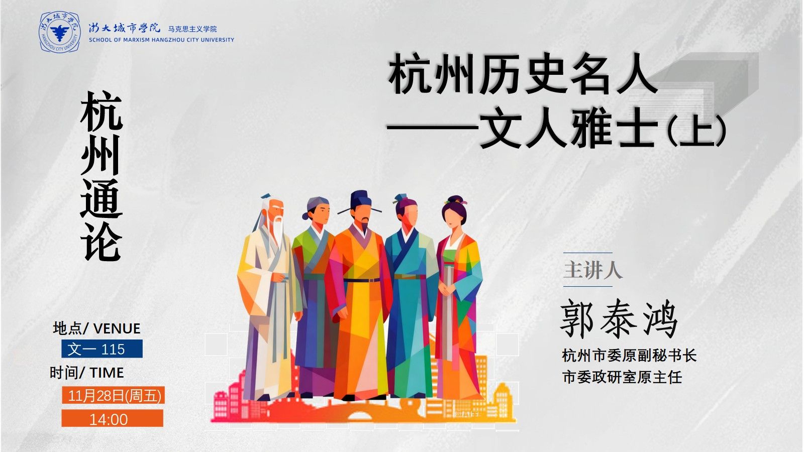 讲座【杭州通论】杭州历史名人 ——文人雅士(上)时间:2025-11-28 14:00
